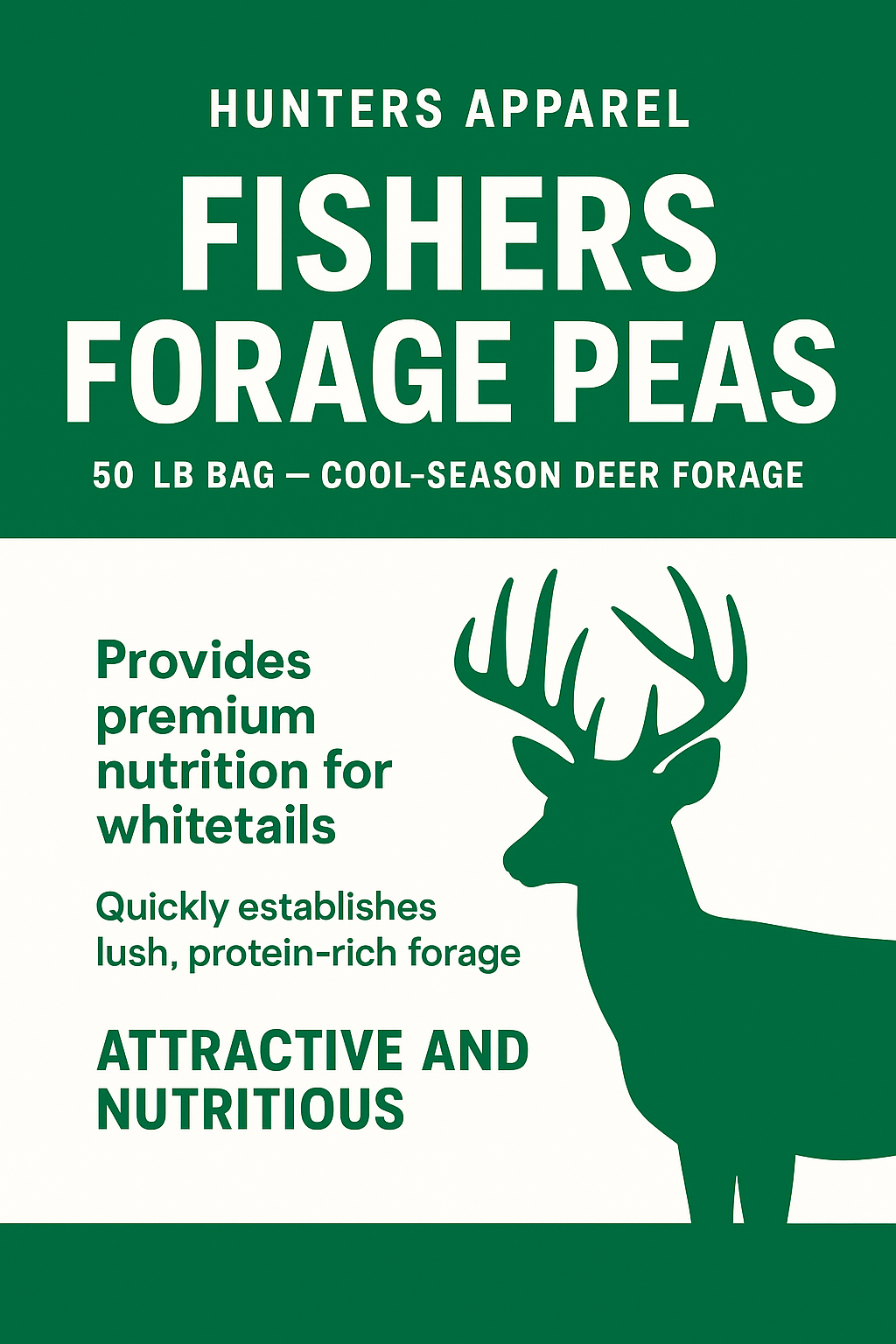 Fishers Forage Peas are a cool-season annual legume designed to give deer hunters a reliable and attractive food plot option for spring and fall. Deer love forage peas for their tender growth, high protein content, and quick establishment.