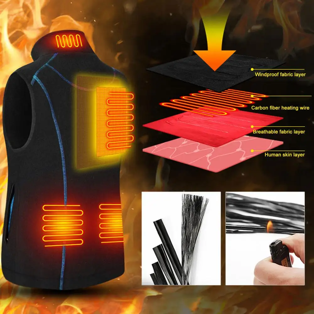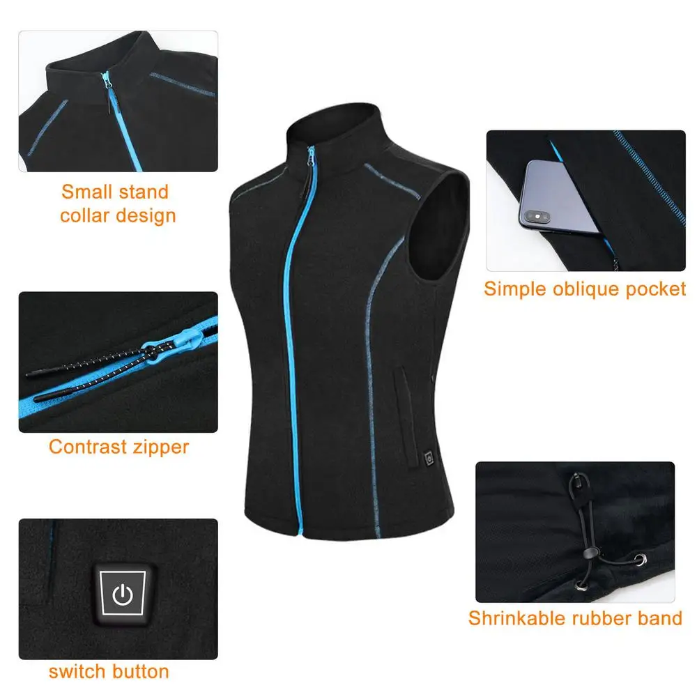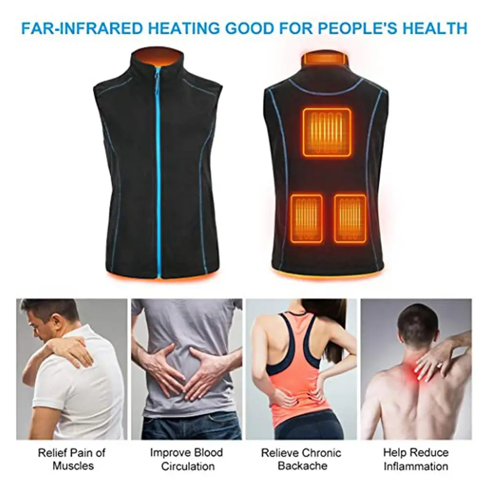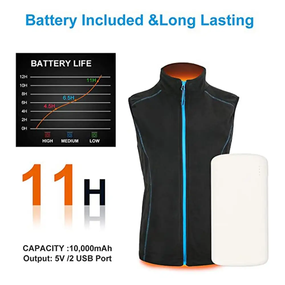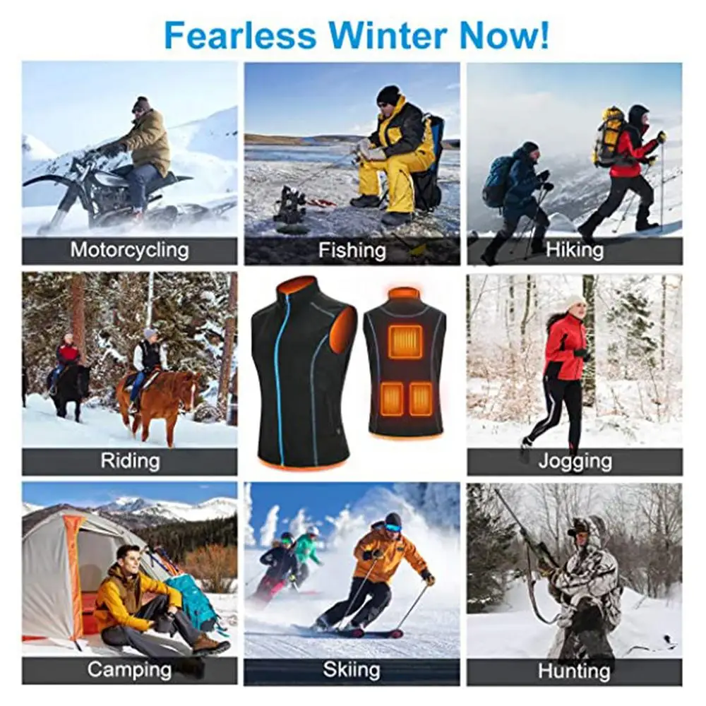 3.Quick Heating Capability: With the ability to heat up within 5 seconds, this rechargeable heated vest is perfect for those who need instant warmth. Compatible with most mobile power supplies and powered by a 5V USB interface, never be caught in the cold again.